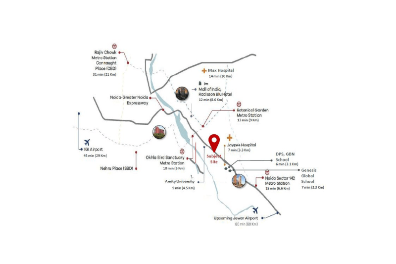 Max Estate is located nearby JayPee Hospital, DPS, Genesis Global, Amity University, etc.